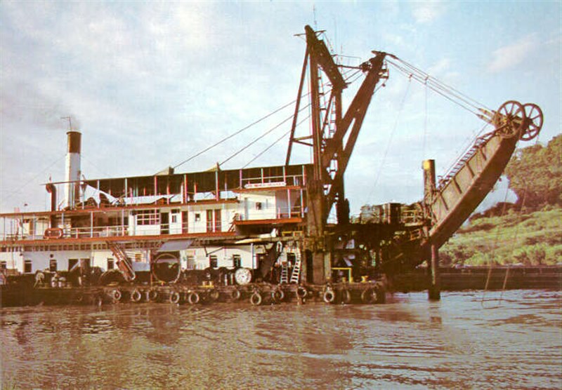 The Cascadas is a 15 cub. yd. dipper dredger, built at New York by the Bucyrus Company. She joined the dredging fleet of the Panama Canal on October 31 1915. Her most memorable feat occurred on February 18, 1916, when she excavated and loaded into dump scows a total of 23,305 cub. yd. of rock and earth, an achievement believed to be a world record for a day's work by any kind of excavating machine in hard material. The Cascadas plays an important part in the Panama Canal Company's dredging programme for maintaining required canal depths. SG249