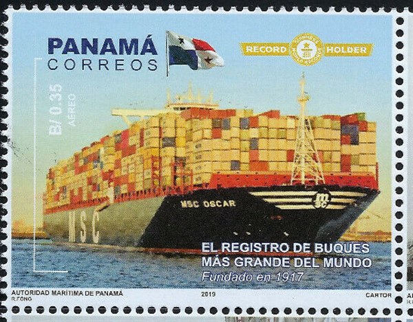 Panama issued in 2019 a series of five stamps and one label which shows us vessels registered in it Panama Ship Registry which was founded in 1917 and the largest ship registry in the world.