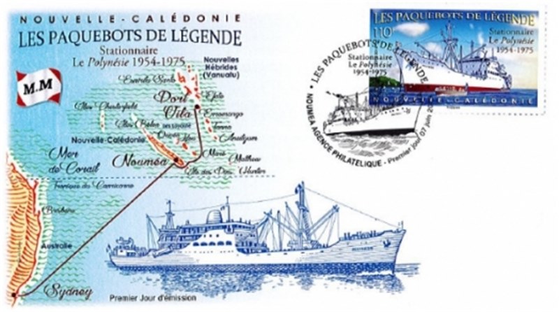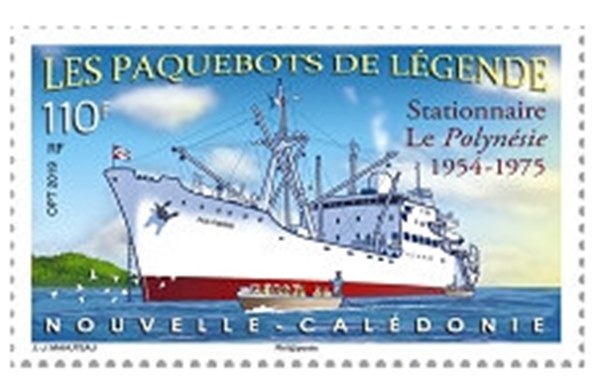 Fourth installment of the stamp series dedicated to iconic steamships in New Caledonia, this 110 XPF stamp issue, designed by Jean-Jacques Mahuteau, shows POLYNÉSIE, a station ship which sailed the Australia - New Caledonia - New Hebrides route from 1954 to 1975.