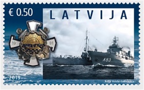Latvia issued in 2019 3 stamps of 0.50 Euro for the 100th Anniversary of the Latvian National Armed Forces. One stamp shows warships of which the vessel in the foreground of the stamp is the VIRSAITIS, the vessel behind her is till so far not identified. Latvia Post gives on these issues: