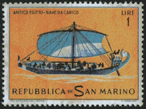 Arturo, I can not agree that the ship is the picture of the stamp is a ship Hatshepsut.Firstly,it is the ship of river, and secondly, the ship 2500 BC.I think the artist made a mistake and you repeated this mistake. The ships of Hatshepsut were depicted on the temple walls Del El Bahri (see pictures). I regret.