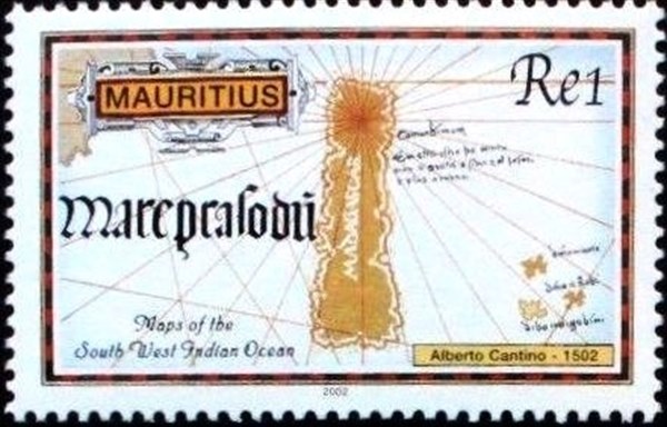 (1) Re. 1 –Alberto Cantino, from 1502, a Portuguese cartographer. On this map, Mauritius is identified as Dina Arobi. https://en.wikipedia.org/wiki/Cantino_planisphere