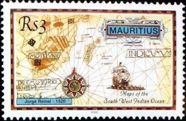 (2) Rs. 3 – map by Jorge Reinel from 1520, another Portuguese cartographer. It is considered as the earliest and most accurate map of Mauritius of that period; https://en.wikipedia.org/wiki/Jorge_Reinel
