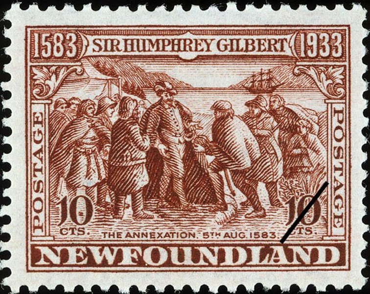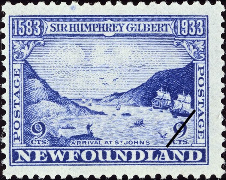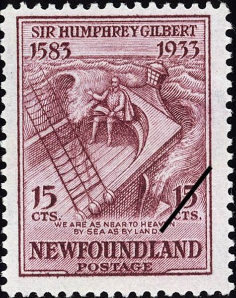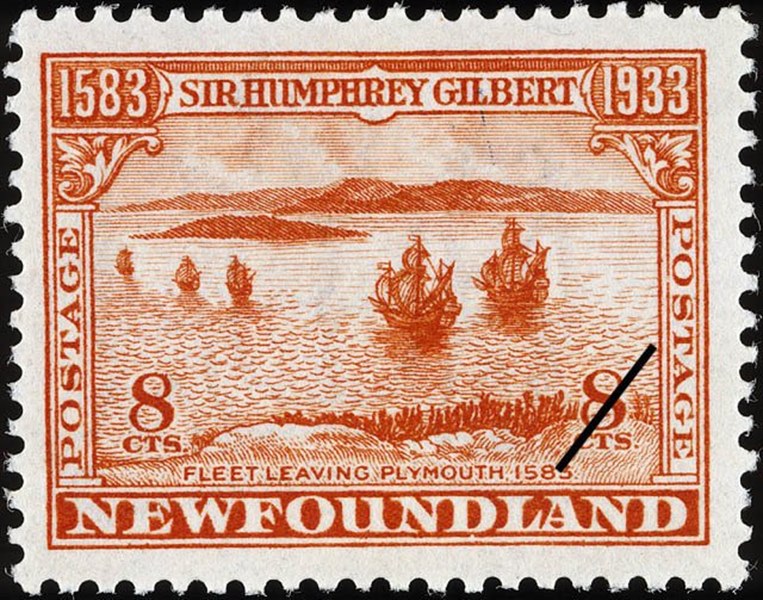 Newfoundland issued in 1933 a set of 14 stamps for the 400th anniversary that Sir Humphrey Gilbert arrived in Newfoundland. Four of this stamp show us vessels used in the voyage.