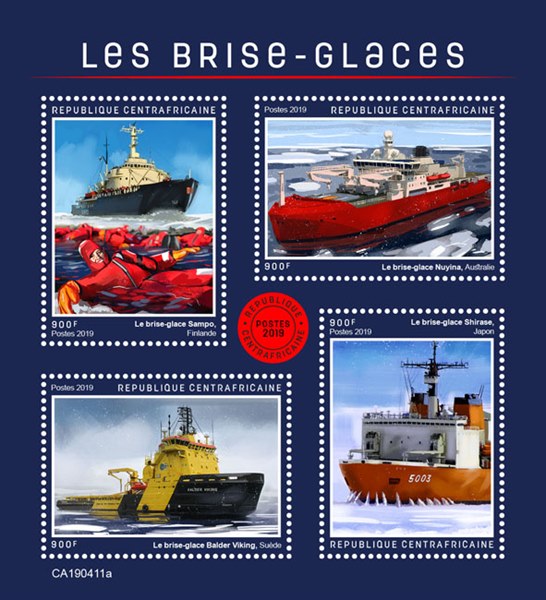 Central African Republic issued in 2019 four stamps and a miniature sheet with icebreakers.