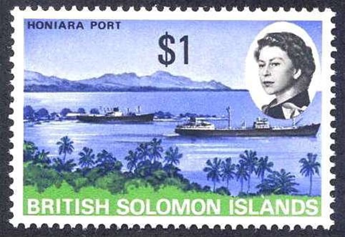 Solomon Islands 1968 $1 sg 179, scott? she is the vessel in the foreground. steaming out of the port of Honiara, the other vessel is the HOLLYBANK: viewtopic.php?f=2&t=6824&p=6820&hilit=hollybank#p6820