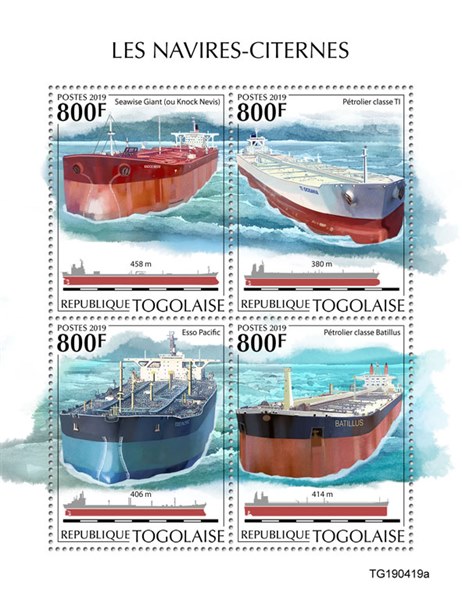 In 2019 Togo issued 4 stamps and a miniature sheet, which shows us tankers,