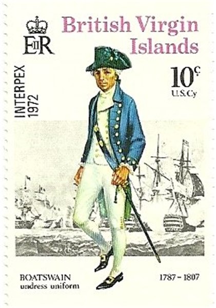 The British Virgin Islands issued in 1972 four stamps which shows us uniforms worn by the Royal Navy personnel.