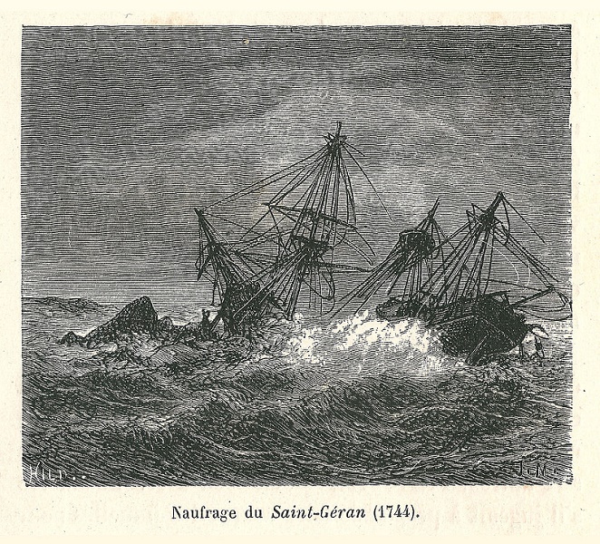 A French East Indiaman of 700 tons, the St Geran was lost on the reefs off Ile d'Ambre, Mauritius, on the night of August 17-18, 1741 with only nine lives saved out of the 192 persons aboard, consisting of 120 passengers and 72 crew.