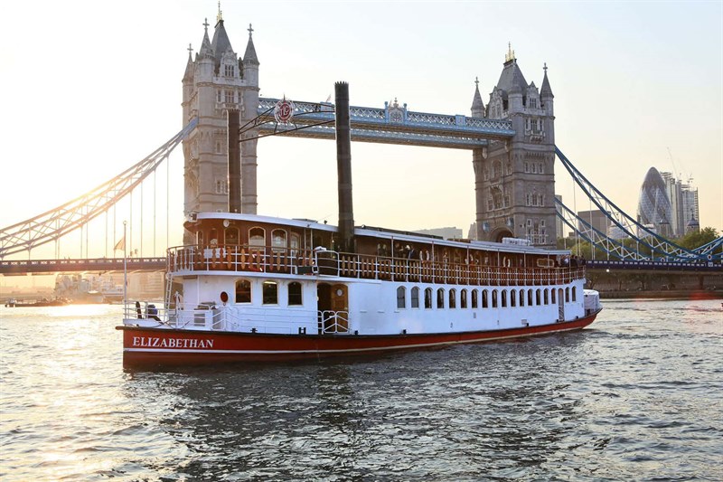 Rich with character, the ´ELIZABETHAN ´ has the unique exterior of a 19th-century Paddle steamer coupled with the interior of a top London restaurant and night club. Even more so, since her refurbishment in March 2013. The fabrics, furnishings, and decor have set new standards of luxury for the Thames. A novel Upper Deck promenade walkway and one of the largest outside areas of any Thames riverboat. Clear views of the floodlit panorama of the river from either level. Larger windows have been installed on the lower level to maximize viewing. She even features a large sliding sunroof above the dance floor so you quite literally can 'dance beneath the stars'!