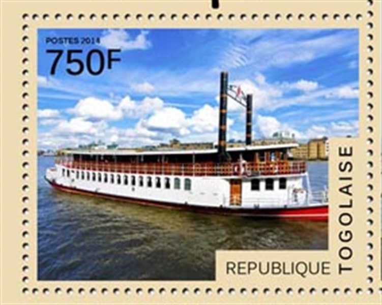 Togo issued in 2014 a set of stamps and a miniature sheet which shows us paddle steamers.