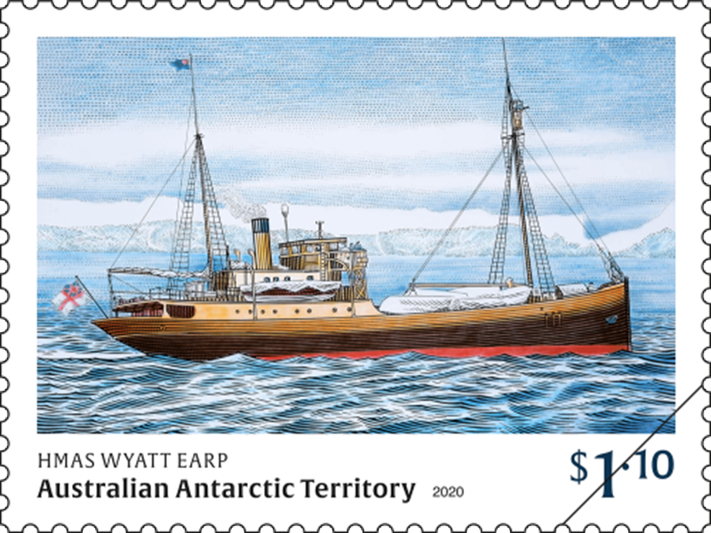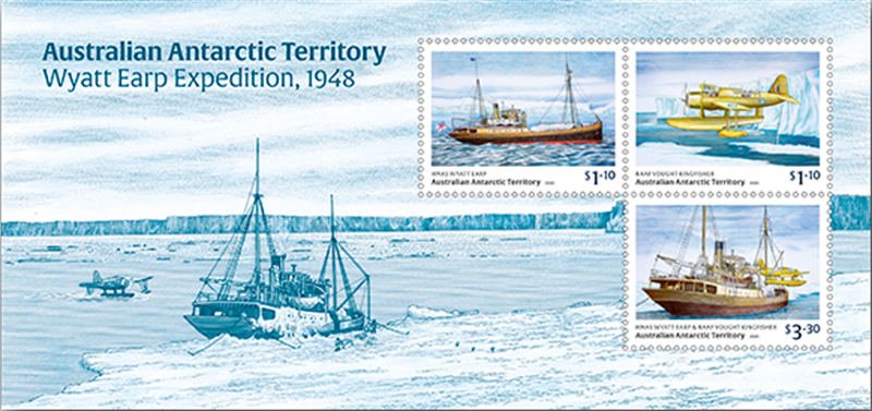 In 2020 the AAT Post issued three stamps and a miniature sheet for the WYATT EARP Expedition in 1948. She are given by this stamps: