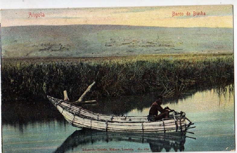 Raft used along the central coast to ferry people and cattle across shallow rivers and for fishing offshore and inshore. Composed of slender strips of bimba wood lashed, pegged, and weighted so that the bow end curves up markedly. Some square-ended, others sharp-bowed. May be concave athwartships, with the outside poles forming gunwales that extend beyond the stern; type of shoe keel in forward part onto which a small stem is socketed. Some at Novo Redondo are so deeply concave that the open end is almost a half circle. The square-ended tchimbala has a framework set onto the raft to provide a bench for rowing. Poled and rowed; those used for fishing step a bamboo mast through a thwart, setting a spritsail. Lobita area boat length 1,5m, width 0.75m. Spelling variant: mbimba. Futher reading: Luis Taveira, “Bimba,” Geographica( Lisbon).