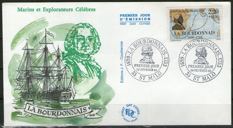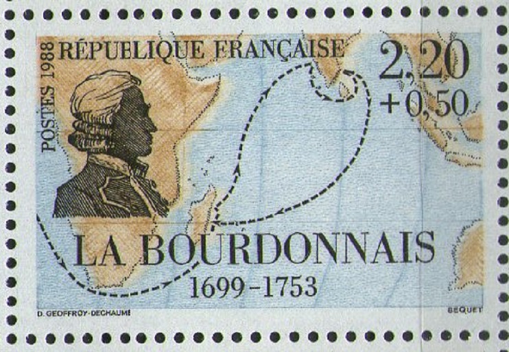 Bertrand-François Mahé, comte de La Bourdonnais (11 February 1699 – 10 November 1753) was a French naval officer and administrator, in the service of the French East India Company. La Bourdonnais was born in Saint-Malo, Brittany. He went to sea when he was at the age of 10, and in 1718 entered the service of the French East India Company as a lieutenant. In 1724 he was promoted captain, and displayed such bravery in the capture of Mahé off the Malabar Coast that the name of the town was added to his own. Although, an alternative account suggests that the town adopted his name, rather than the other way around. For two years he was in the service of the Portuguese Viceroy of Goa, but in 1735 he returned to French service as governor of the Isle de France (now Mauritius) and the Île de Bourbon (Réunion). His first five years' administration of the islands was vigorous and successful. A visit to France in 1740 was interrupted by the outbreak of hostilities with Great Britain, and La Bourdonnais was put at the head of a fleet in Indian waters. He saved Mahé, relieved General Dupleix at Pondicherry, defeated Edward Peyton, and in 1746 participated in the Siege of Madras. He quarrelled with Dupleix over the conduct of affairs in India, and his anger was increased on his return to the Isle de France, when he found that Dupleix had appointed a successor as governor. He set sail on a Dutch vessel to present his case at court, and was captured by the British, but allowed to return to France on parole. Instead of securing a settlement of his quarrel with Dupleix, he was arrested (1748) on a charge of gubernatorial speculation and maladministration, and secretly imprisoned for over two years in the Bastille. He was tried in 1751 and acquitted, but his health was broken by the imprisonment and by chagrin at the loss of his property. To the last he made unjust accusations against Dupleix. He died in Paris, aged 54, on 10 November 1753. The French government gave his widow a pension of 2400 livres.