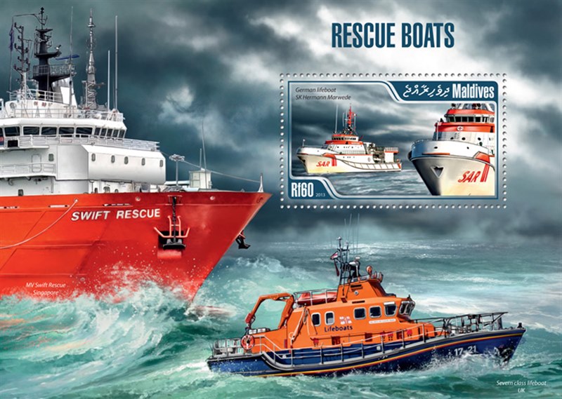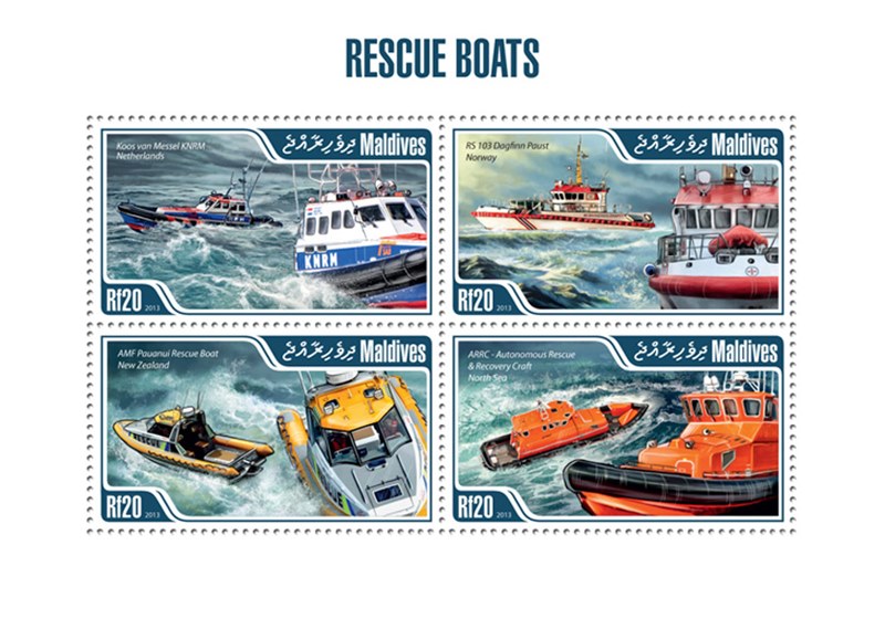 Maldives issued in 2013 four stamps and a miniature sheet with rescue craft.
