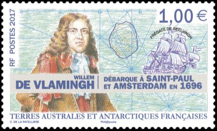 In the 2017 set of French Antarctic, the ship Geelvinck with a picture of Willem de Vlamingh. The ship was named after one of the 17 administrators of the Dutch East India Company.