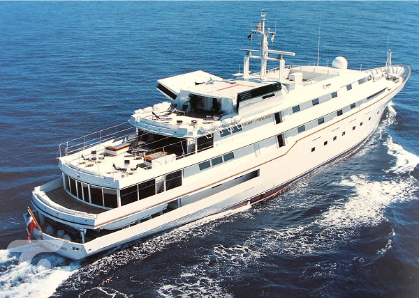 Built in 1980 by Benetti SpA. Viareggio, Italy for Saudi billionaire Adnan Khashoggi as NABILA (name of his daughter) Designed by Bannenberg & Rowell, interior by Luigi Sturchio.