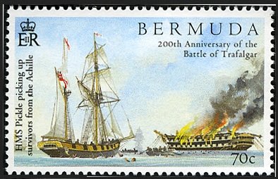Great Britain 2005 42p sg 2577 ( the ship-of-the-line is not identified, the PICKLE is in the background.)