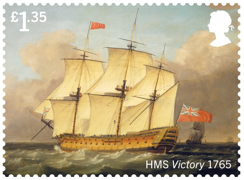 Mr. Ken Berry did identify the three-decker one the Aruba 2011 250c stamp as the HMS VICTORY, Nelson ship, and I agree with this. The flag shown on the stern of the ship is the Union Jack; this flag was not used before 1801 he gives.