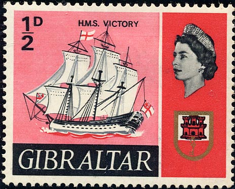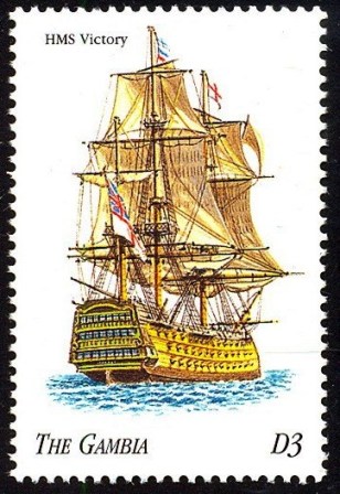 The Nicaragua stamp is also designed after this painting and shows Nelsons flagship HMS VICTORY and in the distance is the HMS CAPTAIN