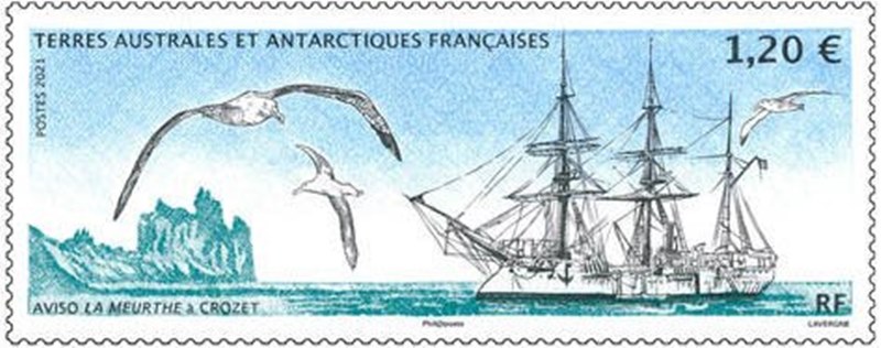 In January 2021, the French Southern and Antarctic Territories postal services issue a stamp with a face value of € 1.20, representing the MEURTHE advisory on a mission to the Crozet Islands
