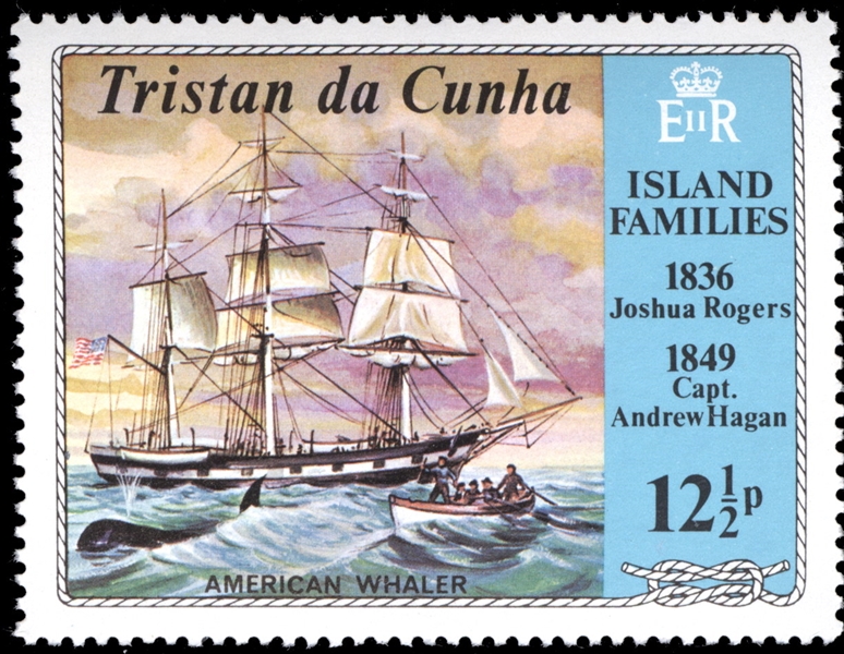 Tristan da Cunha 1971 12½p sg157, scott161 ( The stamp is designed after a painting made by Charles Sidney Raleigh (1830-1925) and given in the book Whale Ships and Whaling by Dow page 150. Navicula 1994 page 4662.