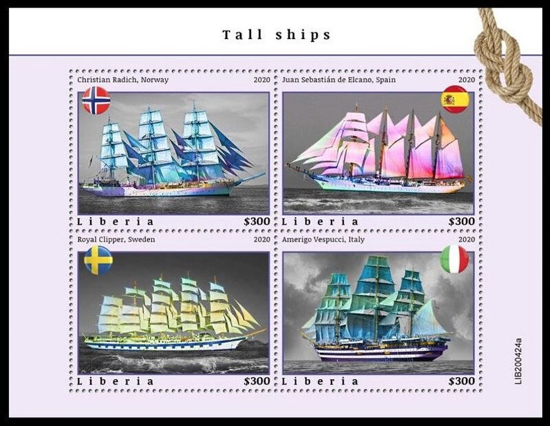 There we are going again, a series with tall ships issued by Liberia in 2020.