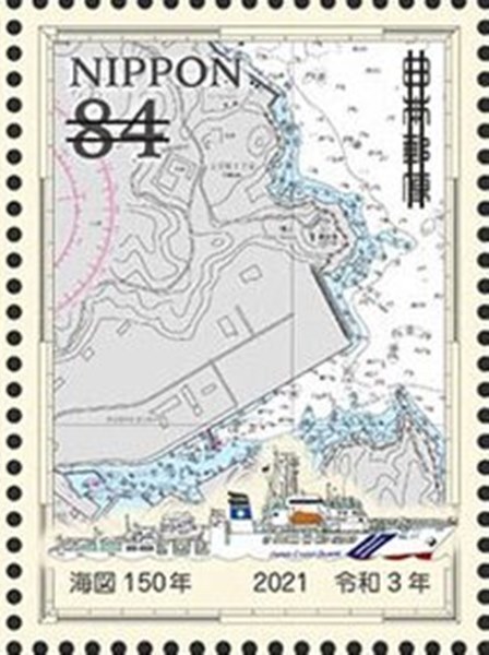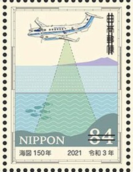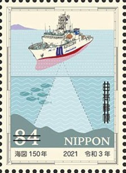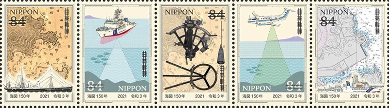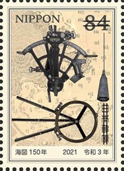 For the 150th Anniversary of the first nautical chart created by Japan, four stamps were issued and a miniature sheet. The stamp and MS shown.