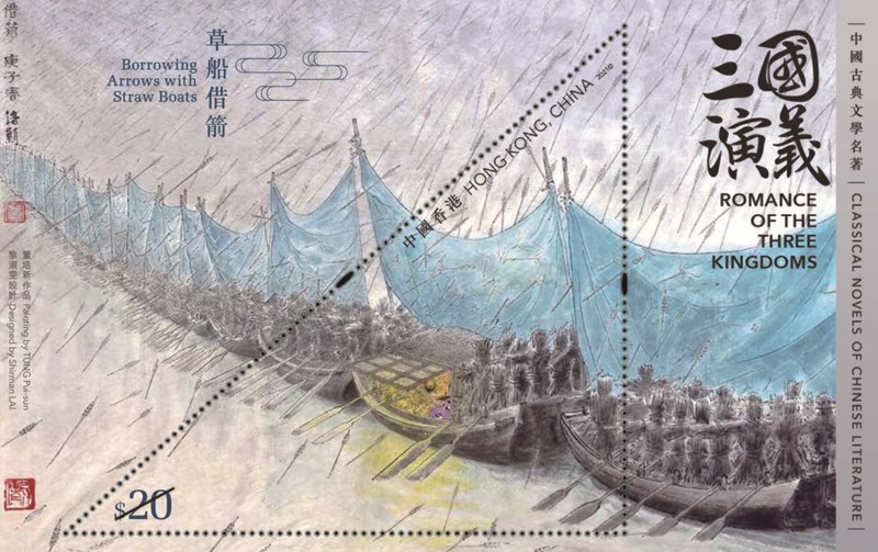 $20 stamp sheetlet - Borrowing Arrows with Straw Boats (Chapter 46)