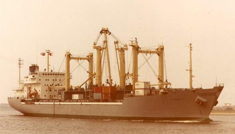 Built as an all purpose general cargo vessel under yard no. 241 by the Warnowerft at Warnemünde, East Germany, for Faneos Shipping Corporation S.A., Greece (I believe a Russian company).