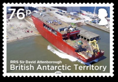 This stamp issue celebrates the construction of the Royal Research Ship SIR DAVID ATTENBOROUGH, the United Kingdom’s state-of-the-art polar research ship that will provide a new, modern platform for Antarctic and Arctic research.