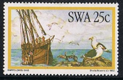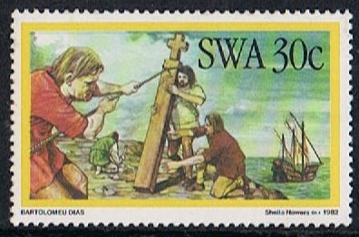 South West Africa issued in 1982 a set of stamps in which the voyage of Bartolomeu Dias is depict. From a leaflet on the issue is given.