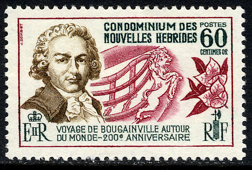 Best known as a French naval officer and navigator although he was a professional soldier until he age of 37. However he had ambitions seawards and so at his own expense he established a colonising settlement in the Falkland Islands. This met with objections from Spain and when Bouganville sailed in December 1766 in command of the frigate La BOUDEUSE and accompanied by the store ship L'ETOILE. His first task was the evacuation of the colony.