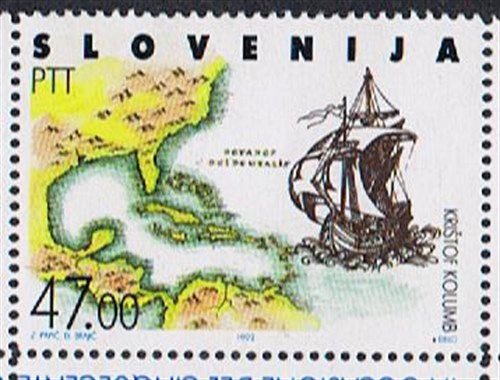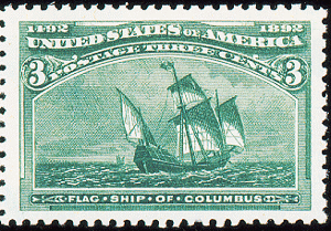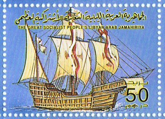 The ships Columbus used on his voyages to the New World are depict on many stamps; one of this is the Libya stamp of 1993 of 50dh.