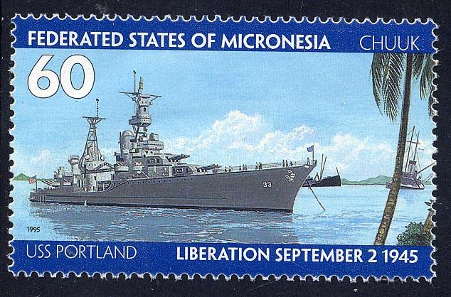 From November 1943 through February 1944, PORTLAND participated in the Gilbert and Marshall Islands campaigns. She next screened carriers during air strikes against Palau, Yap, Ulithi, and Woleai 30 March–1 April.