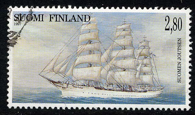 Finland is the first country to issue a commemorative stamp for the Tall Ship's Race 1972. The 50p stamp depicts the Finnish training-ship Suomen Joutsen (exOldenburg, ex-Laennec); the Finnish name means "Finnish Swan". She is a steel ship of 2,299 tons gross, 2,011 net, built by Chant. et Atel. de St. Nazaire, at St. Nazaire, and owned by Soc. Anon. des Armateurs Nantais. The Laennec became the German Oldenburg before coming under the-Finnish-flag. School-ships naturally have large crews, and thus some of the French-built ships with long poops and fo'c's'le heads (which attracted a higher government bounty, because it was paid on gross tonnage), were converted to sea training ships to good purpose.