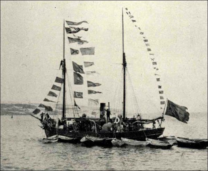 To replace her Sir Wilfred bought a second-hand vessel named the Einna. A steel auxiliary schooner, she was built by Ramage and Ferguson, at Leith, and was launched as the Runa. Her gross tonnage was 80, with a length of 85 ft. 4 in., a beam of 16 ft. 1 in. and draft of 9 ft. 2 in. Some critics considered her so small that Grenfell would never be able to hire a professional crew of sailors to take her across the Atlantic. They were true prophets, but the problem was solved by volunteers.