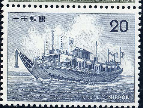 The Tenchi Maru was a state barge built in 1630 as a typical warship of the Tokugawa Government. During the age of civil wars, various warships were actively in use in the Seto Inland Sea and other areas. Particularly the Atakebune was a prominent warship until the Tokugawa government prohibited its construction and possession in order to weaken the power lords in Western Japan. After that, the Sekibune became the main warship. The Tenchi Maru, with a length of 33 metres, a width of 7.2 metres and rowed by 78 oarmen, was the largest Sekibune in those days. It was a beautiful craft with its body lacquered in vermillion.