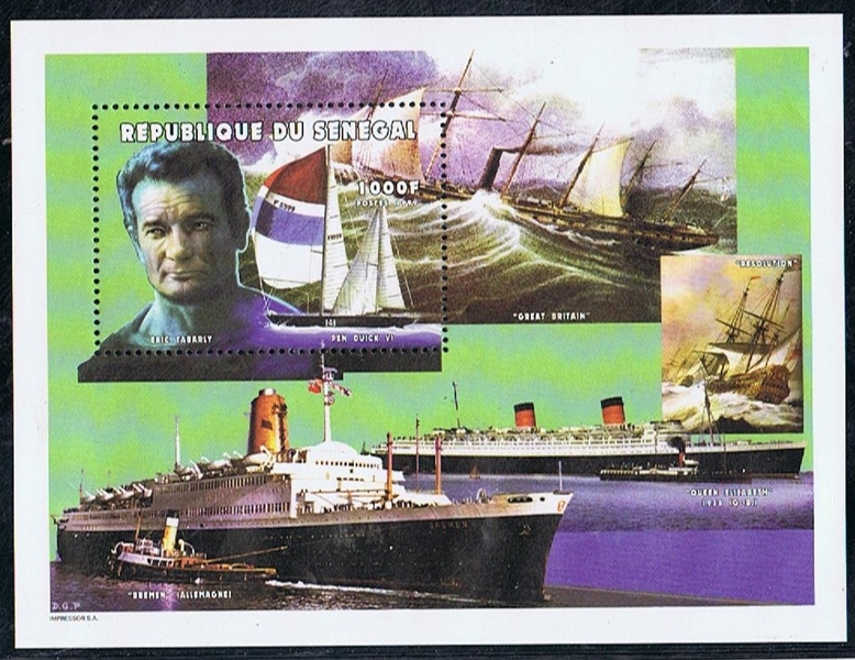 To commemorate the opening of the International Transport Exhibition at Munich on June 25, 1965, a set of six stamps was issued depicting various forms of transport, the 70 pf. stamp showing the passenger liner Bremen and the Hammonia of a century ago. The Bremen is the fifth ship of the name and was completed in 1939 for the Cie. de Navigation Sud Atlantique as the Pasteur; under the latter name she is depicted on a French stamp issued in 1941.