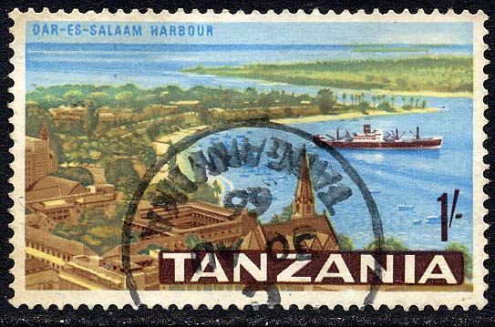 Stamp design taken from aerial photograph but designer has omitted the ships samson posts. Tanzania SG136.