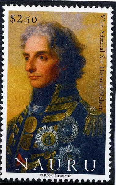The $2.50 stamp of Nauru is from a portrait of Nelson by Sir William Beechey in London in 1800.(6)