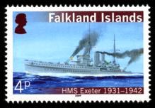 The stamp of 27p depicts Supermarine Walrus and HMS EXETER.