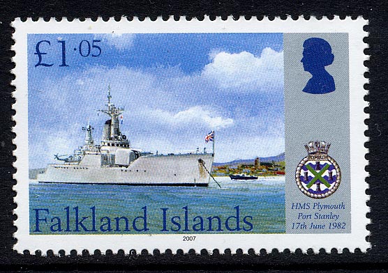 She underwent emergency repairs from the STENA SEASPREAD, before rejoining the fleet. After the surrender of Stanley, PLYMOUTH was the first ship to enter Stanley Harbour.