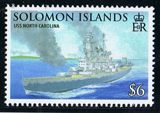 NORTH CAROLINA and the Navy began the long island-hopping campaign for victor over the Japanese by landing marines on Guadalcanal and Tulagi 7 August 1942. After screening ENTERPRISE (CV-6) in the Air Support Force for the invasion, North Carolina guarded the carrier during operations protecting supply and communication lines southeast of the Solomon’s. Enemy carriers were located 24 August, and the Battle of the Eastern Solomon’s erupted. The Americans struck first, sinking carrier RYUJO; Japanese retaliation came as bombers and torpedo planes, covered by fighters, roared in on ENTERPRISE and NORTH CAROLINA. In an 8-minute action, NORTH CAROLINA shot down between 7 and 14 enemy aircraft, her gunners standing to their guns despite the jarring detonation of 7 near-misses. One man was killed by a strafer, but the ship was undamaged. The protection NORTH CAROLINA could offer ENTERPRISE was limited as the speedy carrier drew ahead of her. ENTERPRISE took three direct hits while her aircraft severely damaged sea-plane carrier CHITOSE and hit other Japanese ships. Since the Japanese lost about 100 aircraft in this action, the United States won control of the air and averted a threatened Japanese reinforcement of Guadalcanal.
