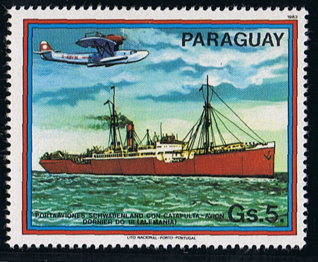Only the SCHWABENLAND is on a stamp, other ships depict on the MS are US ESSEX (CV-9).