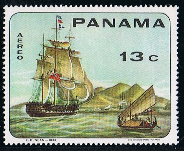 According the Ship Stamp Encyclopedia and Navicula the ship depict on this stamp of Panama issued 1968 13c depict the British East India Co. ship SIR DAVID SCOTT.