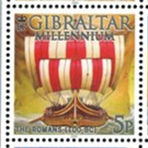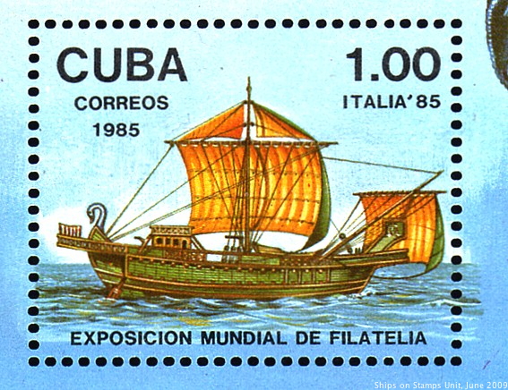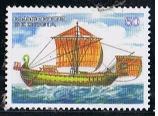 The Roman merchantmen depict on this stamp, the design is made after contemporary reliefs found in Italy and the Syrian coast.