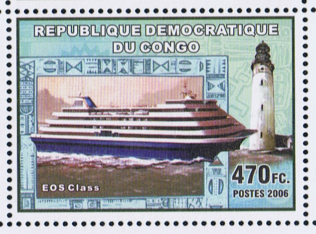The http://www.swath.com/pictures.htm depict an EOS class passenger ship and the same design is depict on the stamp. If the design all is used for a new built ship I can not find.