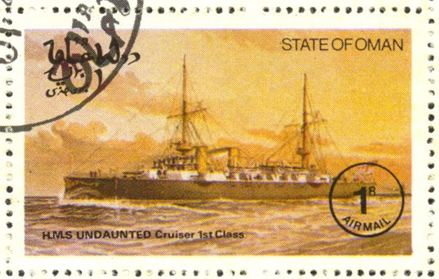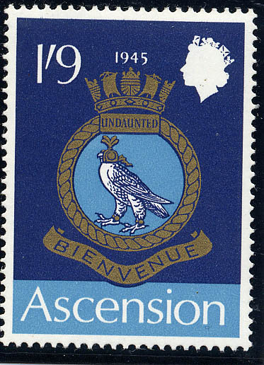 Undaunted, on the Is.9d. stamp, is a name dating back to 1794 when the French storeship Royaliste, a sixth-rate of 28 guns, was captured by a British squadron at Martinique on March 17, in that year and became the first ship of the name in the Royal Navy. The prize was sold in the following year. (Another authority however gives the name of the French ship as the Bienvenue.