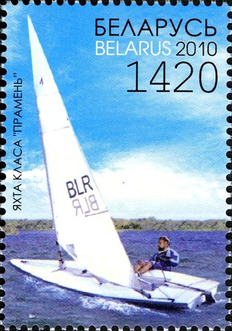 As given by the Belarus Post the yacht depict is a Lunch class sailboat, it is a single handed centreboard sailing yacht and a copy of the International Lazer class.